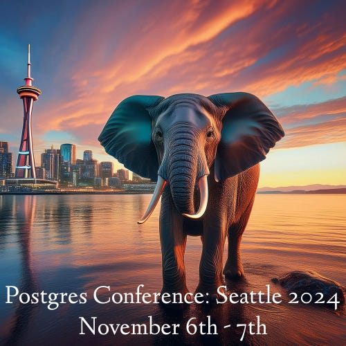 Join us in Seattle for Postgres Conference: Seattle 2024. It will be the dead of fall. It is guaranteed to be cloudy, rainy, chilly and full of fantastic Postgres content for all skill levels! The call for papers is now open and we are looking forward to seeing everyone there!